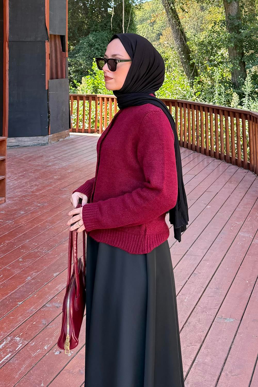 Bisiklet Yaka Kısa Hırka Bordo (MX6951)
