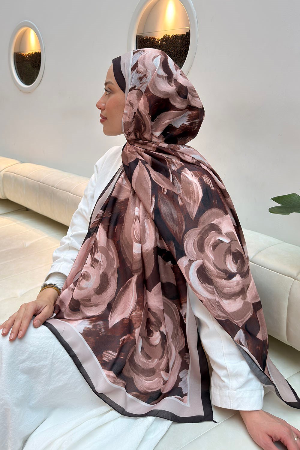Çiçek Desen Pamuk Şal Acı Kahverengi (20154)
