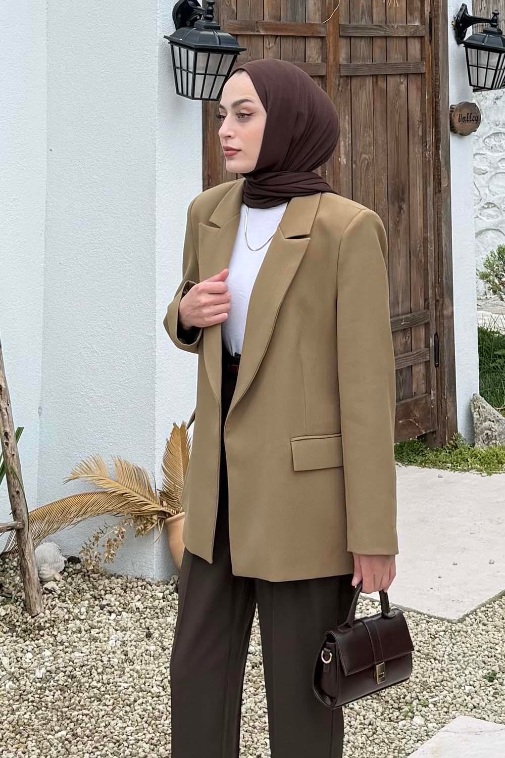 Çizgili Astarlı Tesettür Ceket Haki (EFI7560)