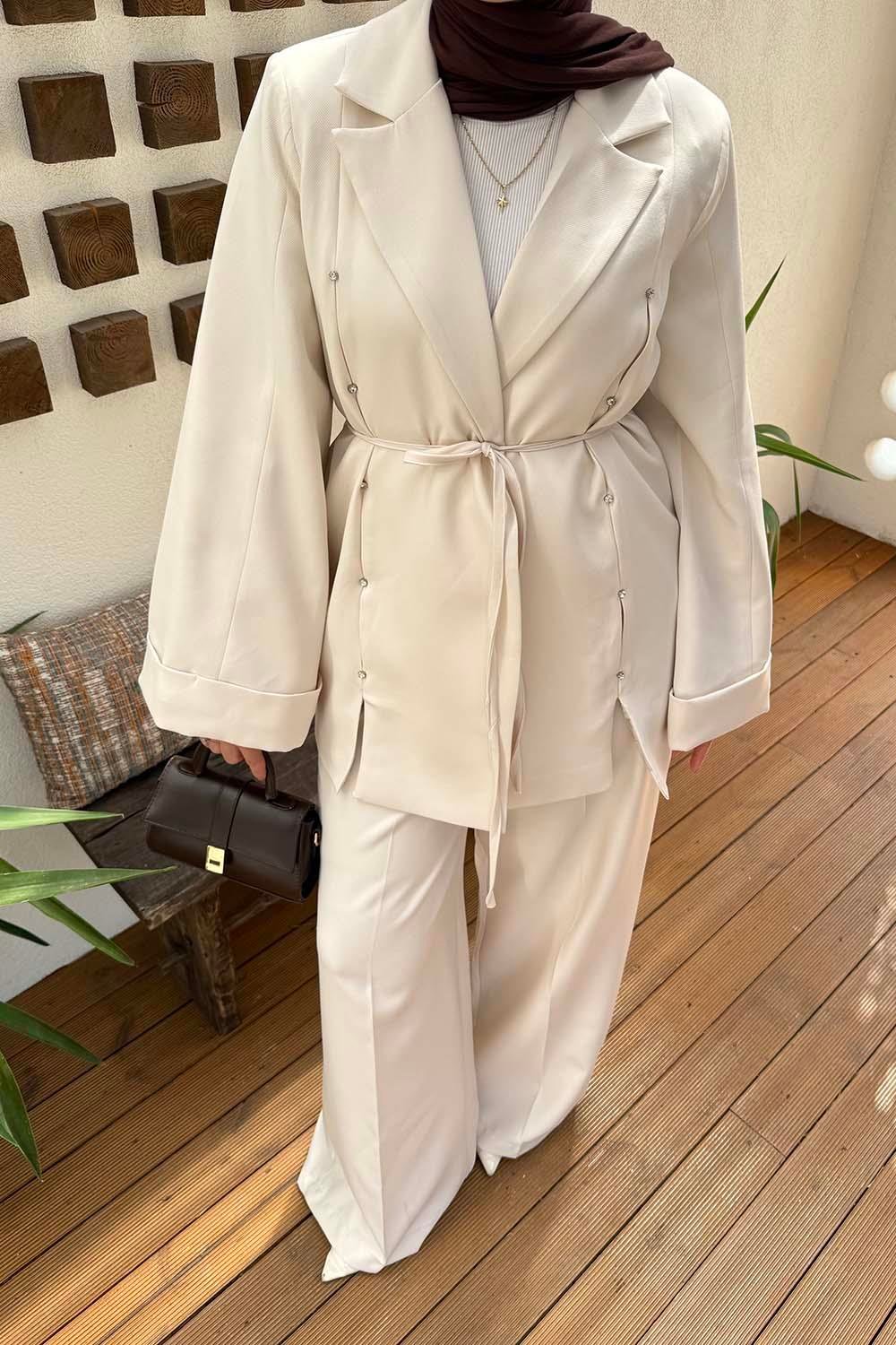 Lamelif Pile Detaylı Tesettür Tüvit Takım