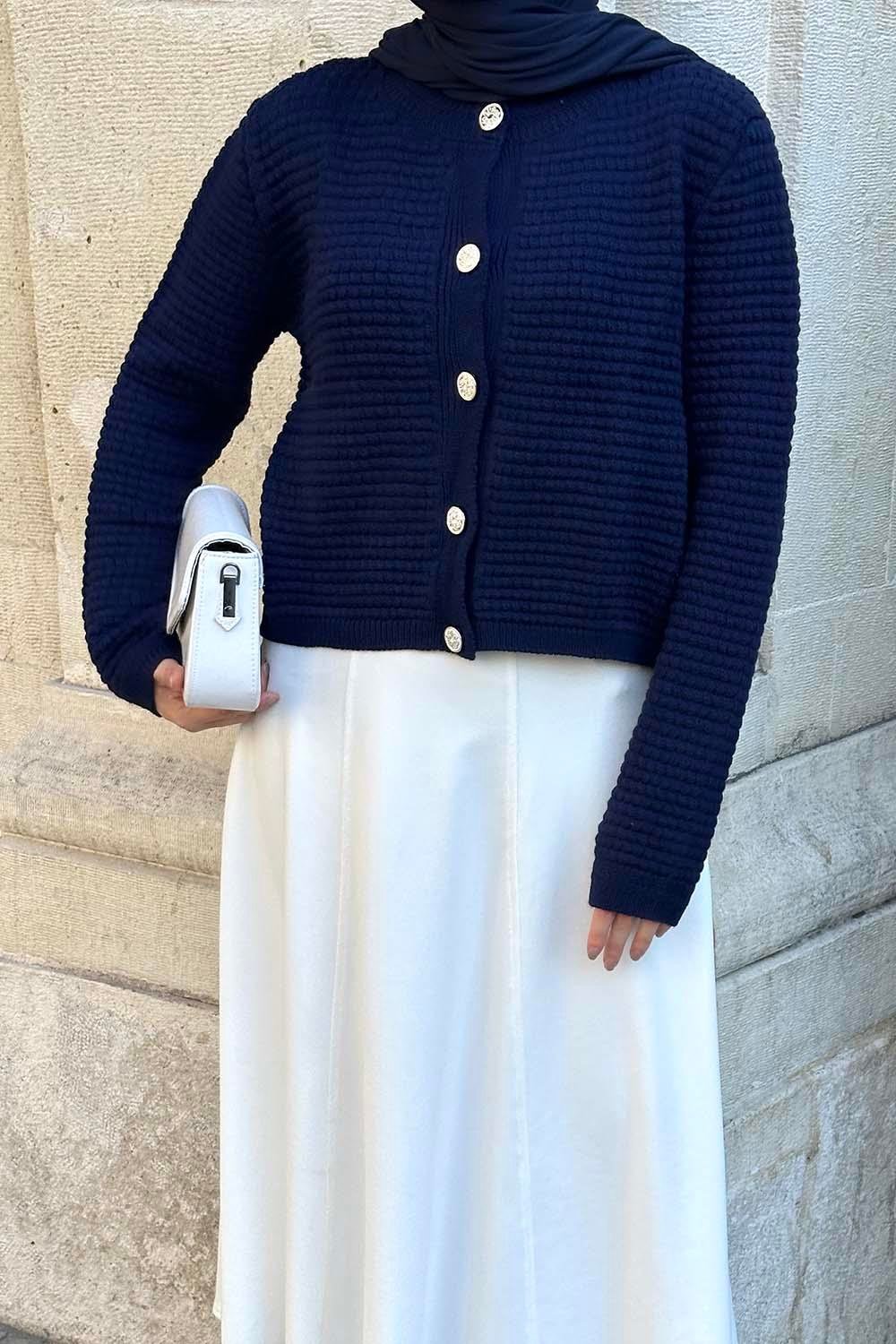 Düğmeli Triko Hırka Lacivert (MX6880)