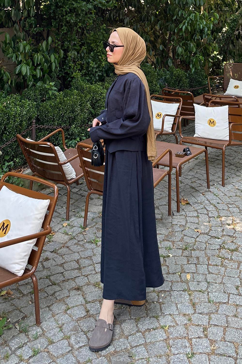 Etekli Tesettür Takım İndigo Etekli Tesettür Takım Taş Etekli Tesettür Takım Bordo