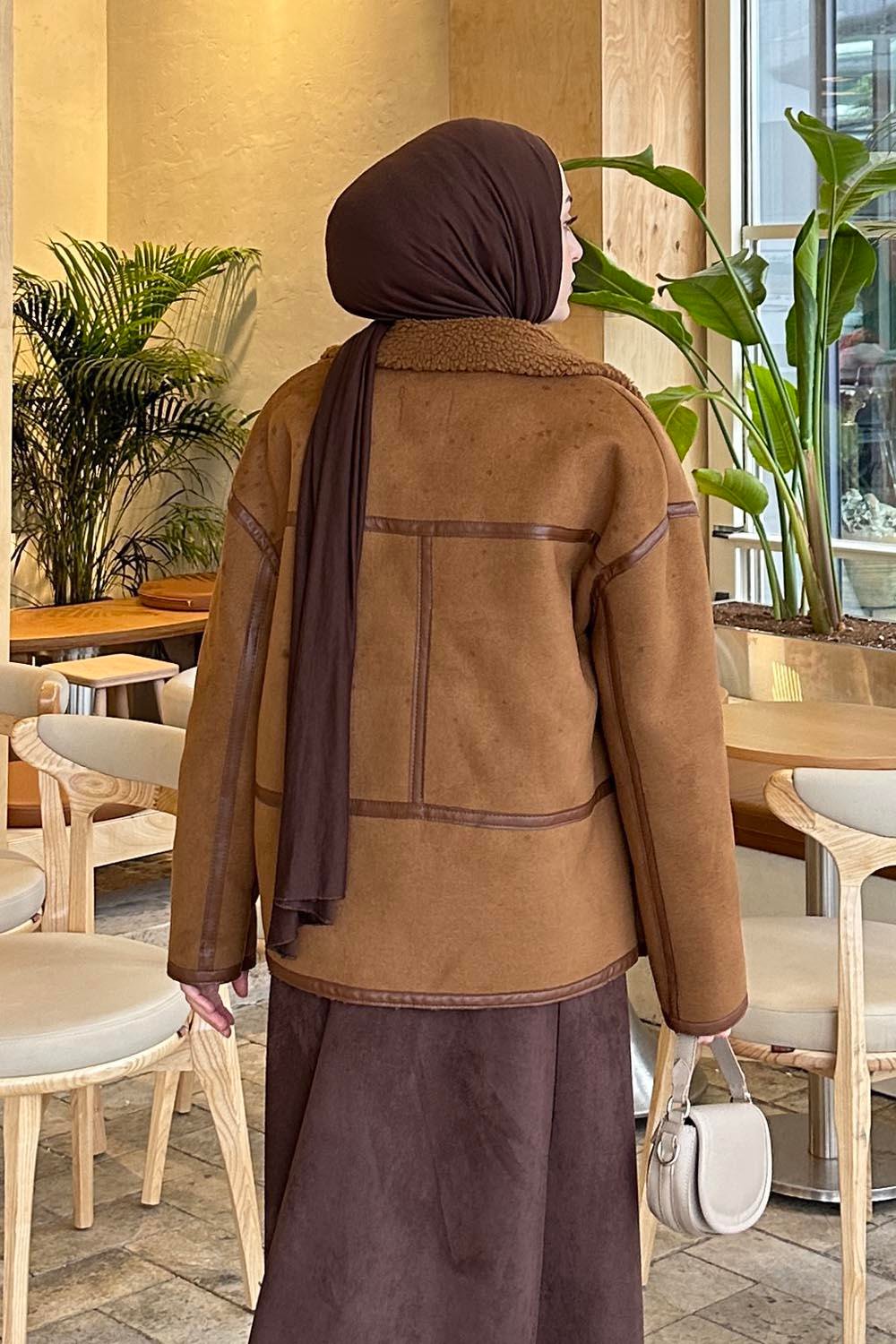 Fermuarlı İçi Peluş Detaylı Süet Mont TABA (BST21481)