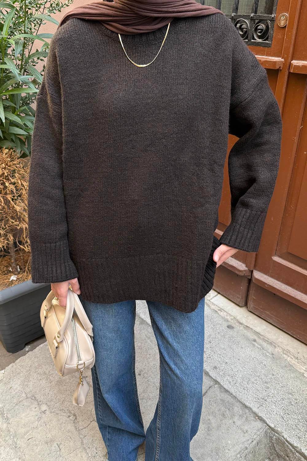 Geniş Kollu Kazak Acı Kahverengi (MX6925)