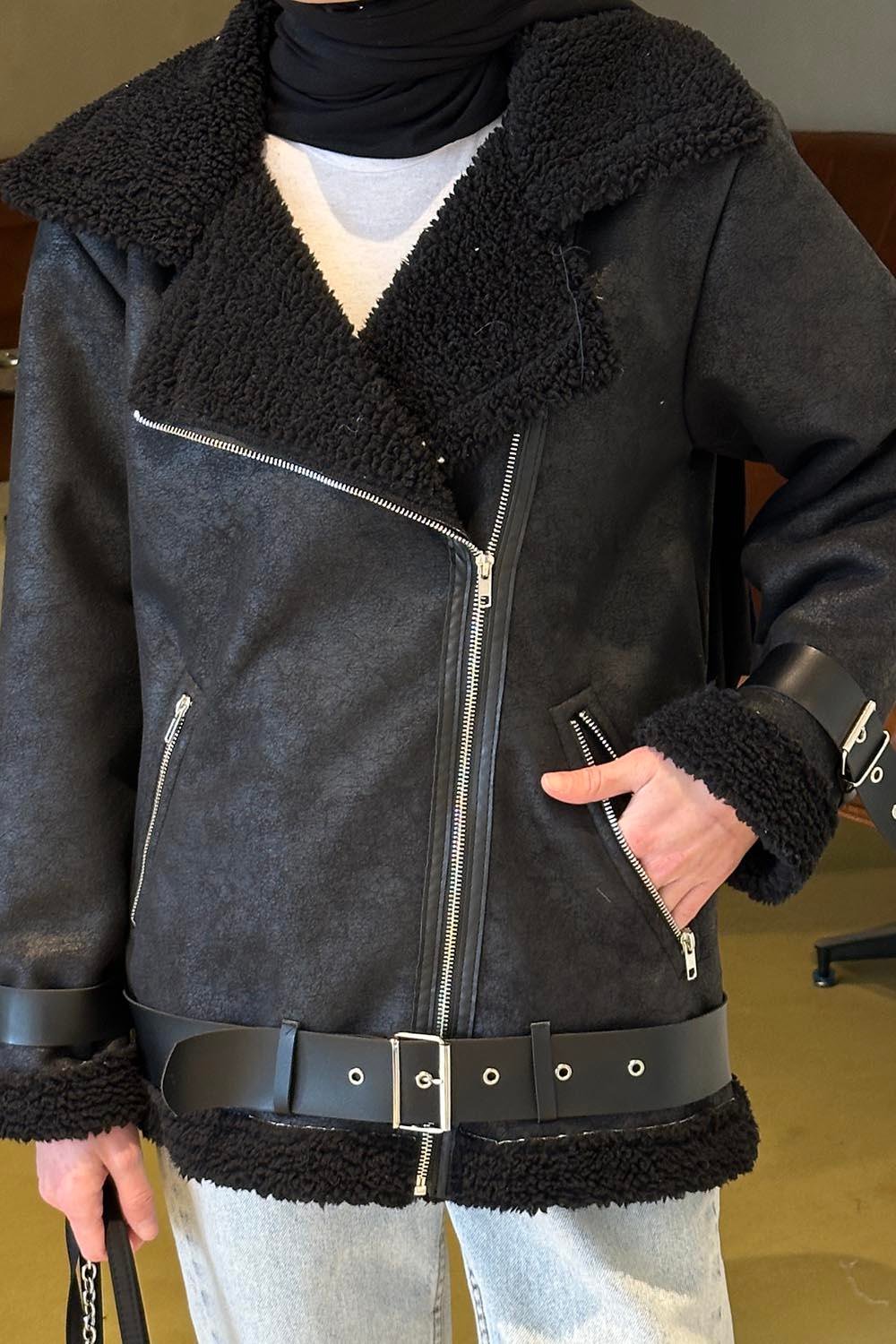 İçi Kürklü Biker Mont