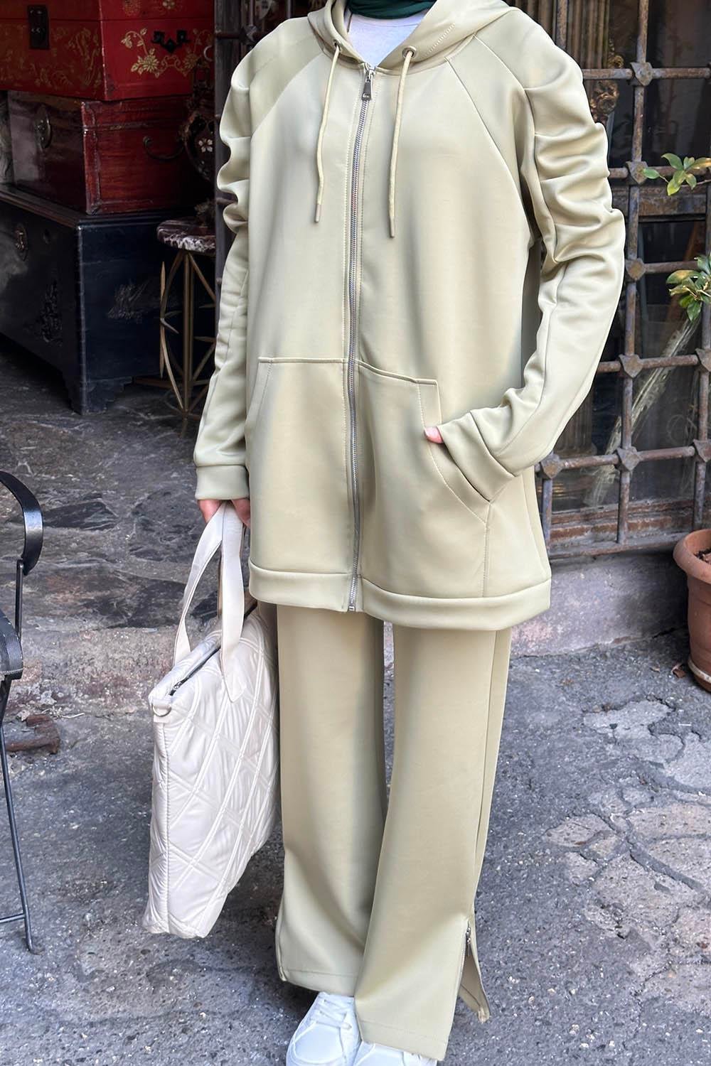 Kol Büzgü Detaylı İkili Scuba Tesettür Takım Yeşil (tab2115)